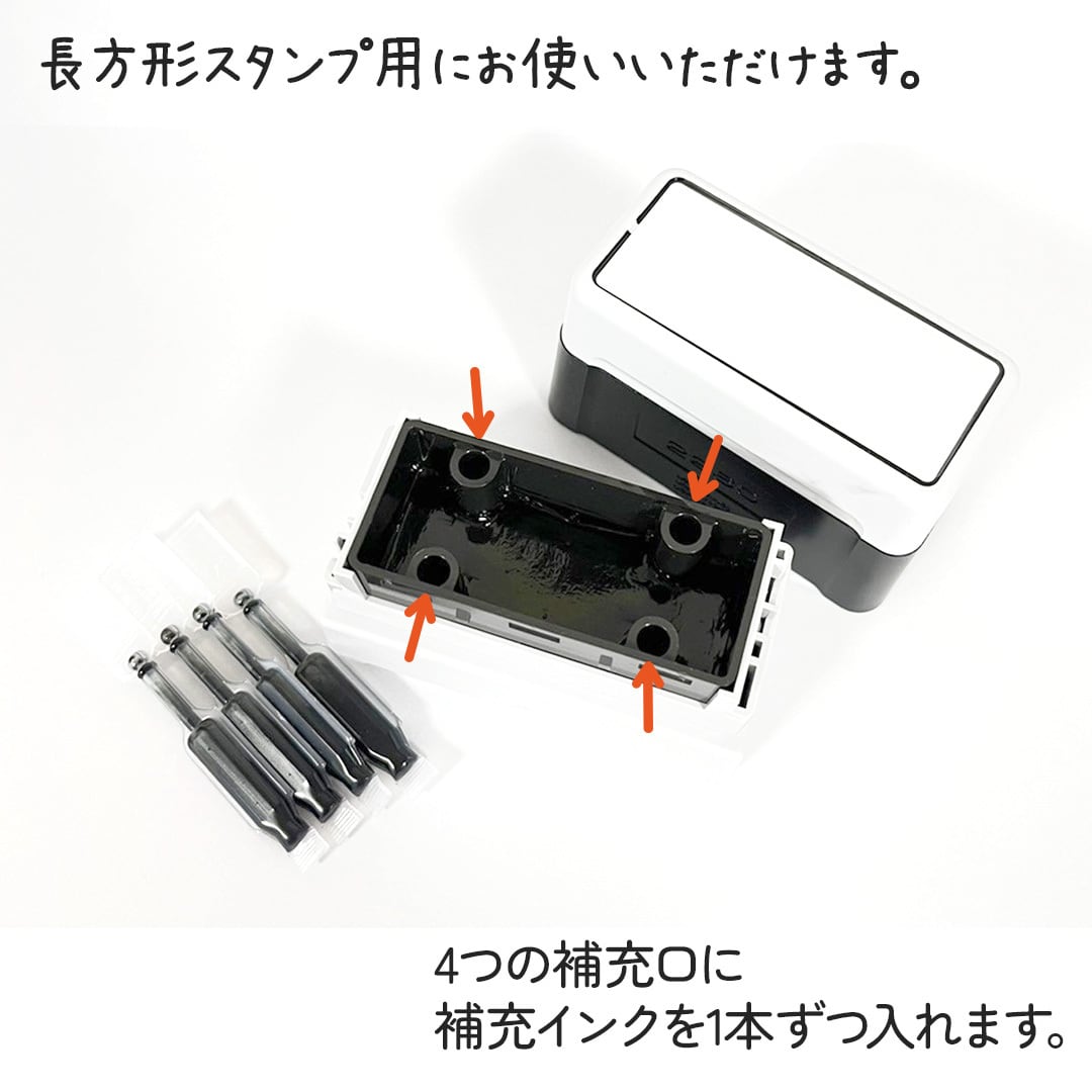 スタンプの上部カバーを分解していただきますと、インク補充口が4つございますので、それぞれにインクを1本ずつ挿入ください。