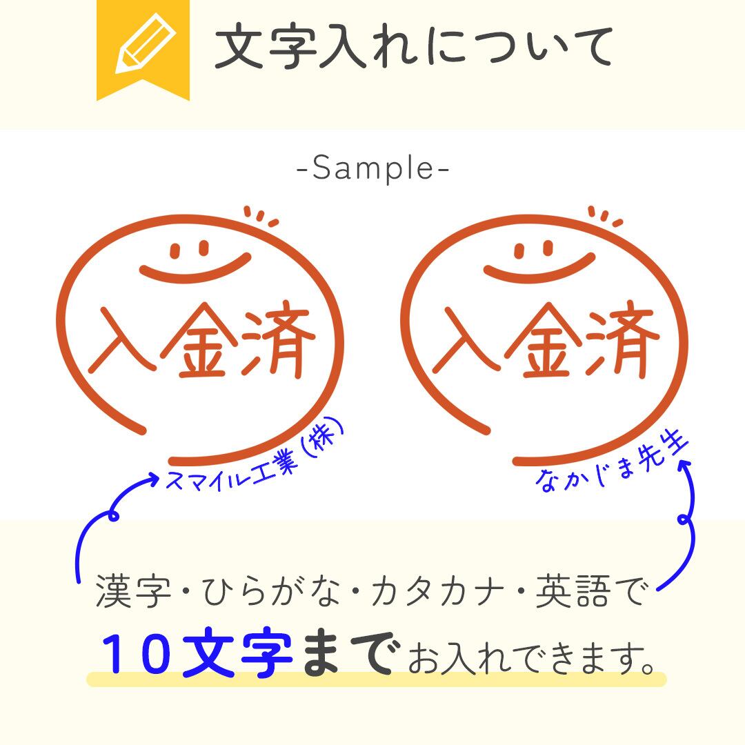 スマイルデザインスタンプの下部に、あなたのお名前や会社名など、好きな文字を10文字までお入れして作成します。