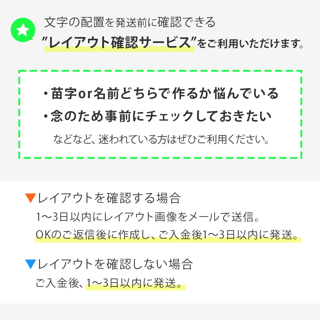 1〜3日以内にレイアウト画像を送信。OKのご返信後に作成し1〜3日以内に発送。