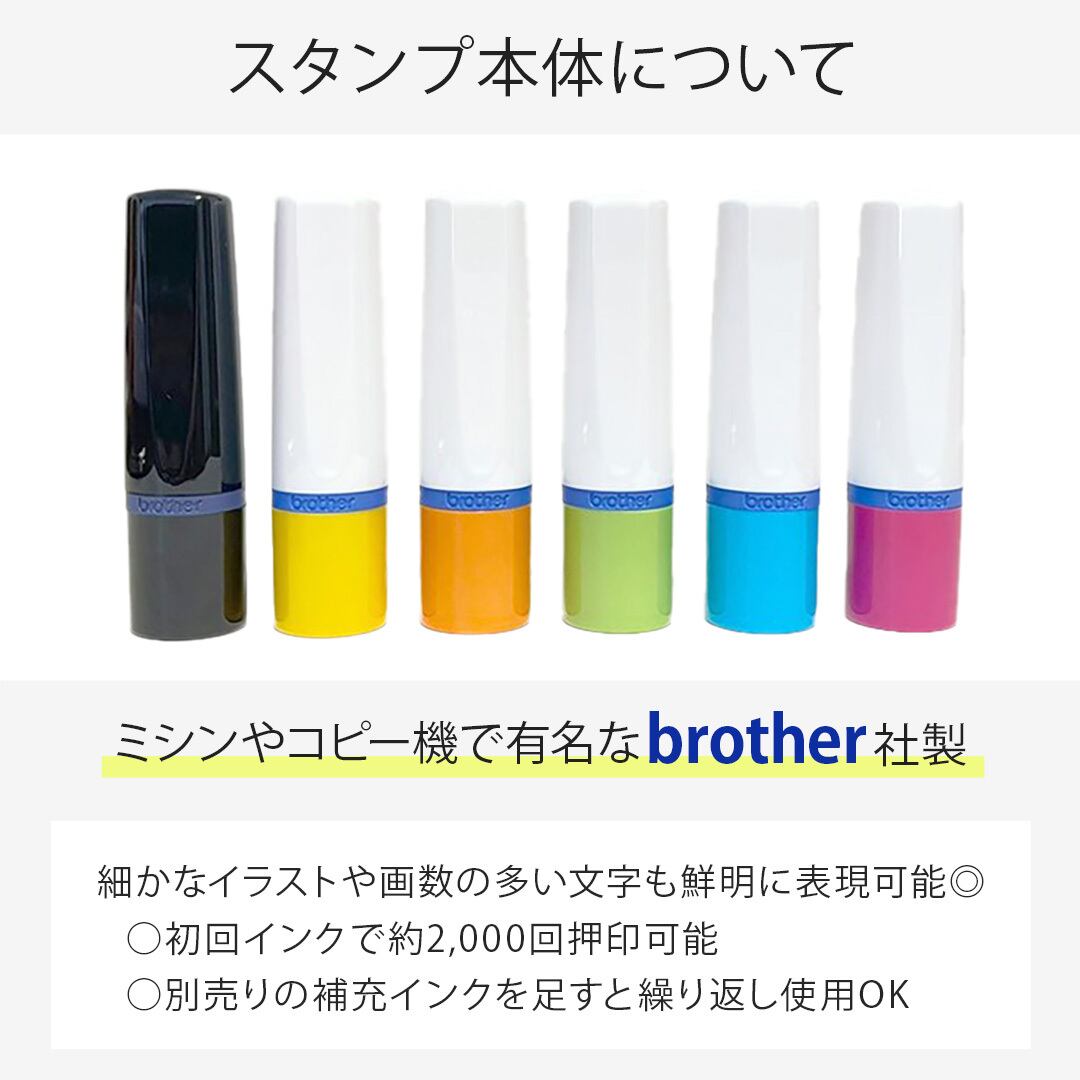 ネーム印の素材はミシンやコピー機製造で有名な「brother」社製。