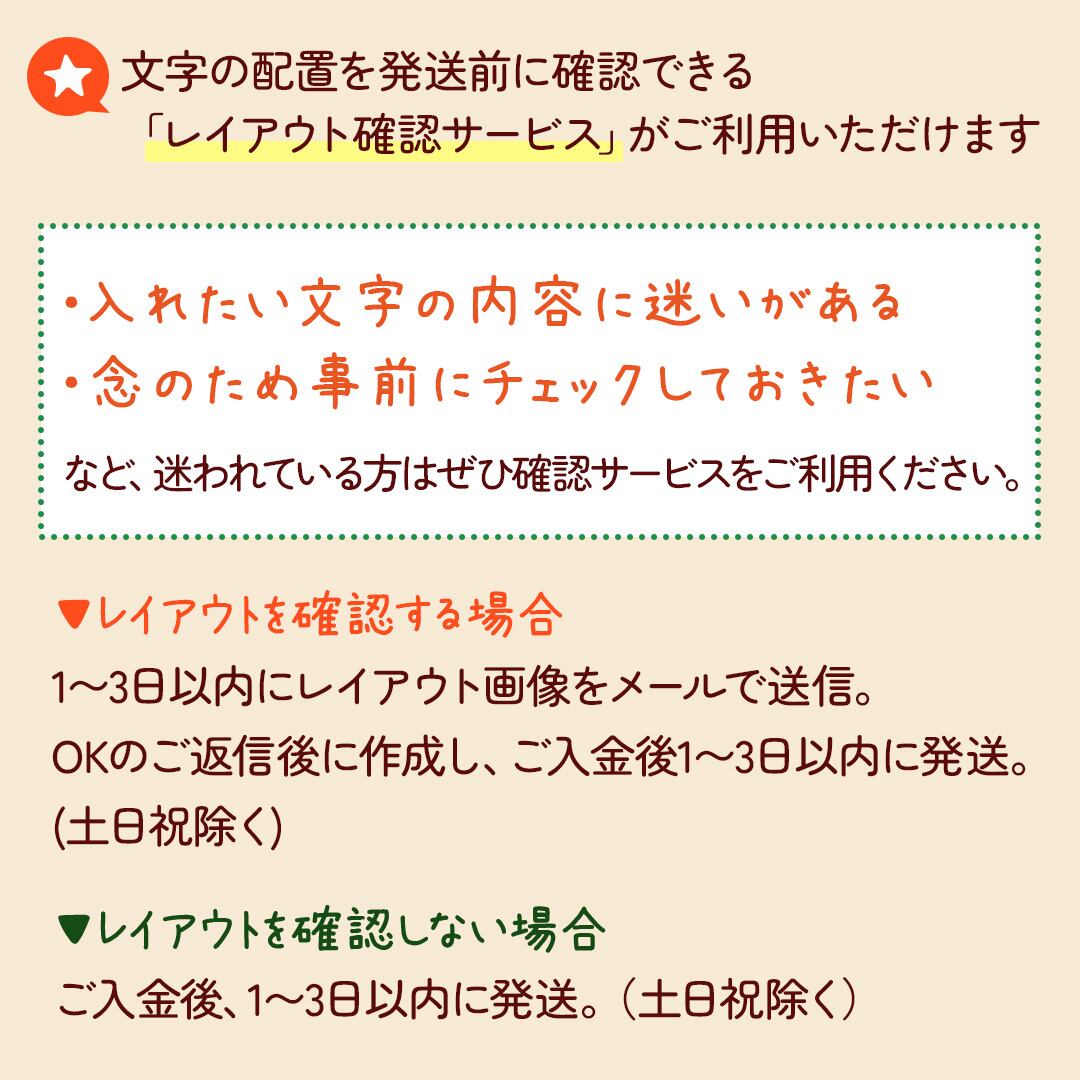 →メールで画像を送信。OKのご返信後1〜3日以内に発送。(土日祝を除く)