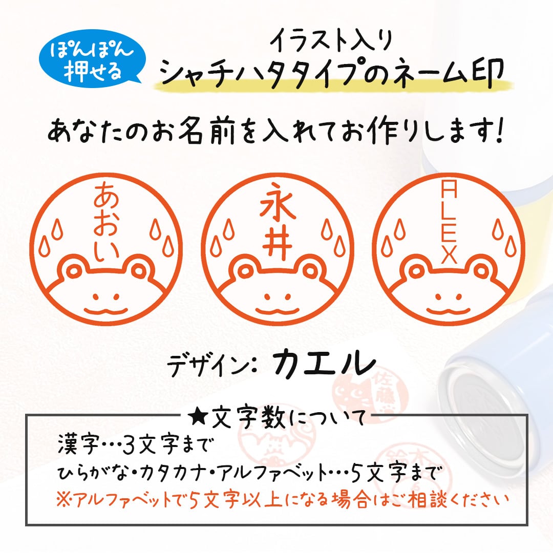 かわいいイラスト付きのシャチハタタイプネーム印。
