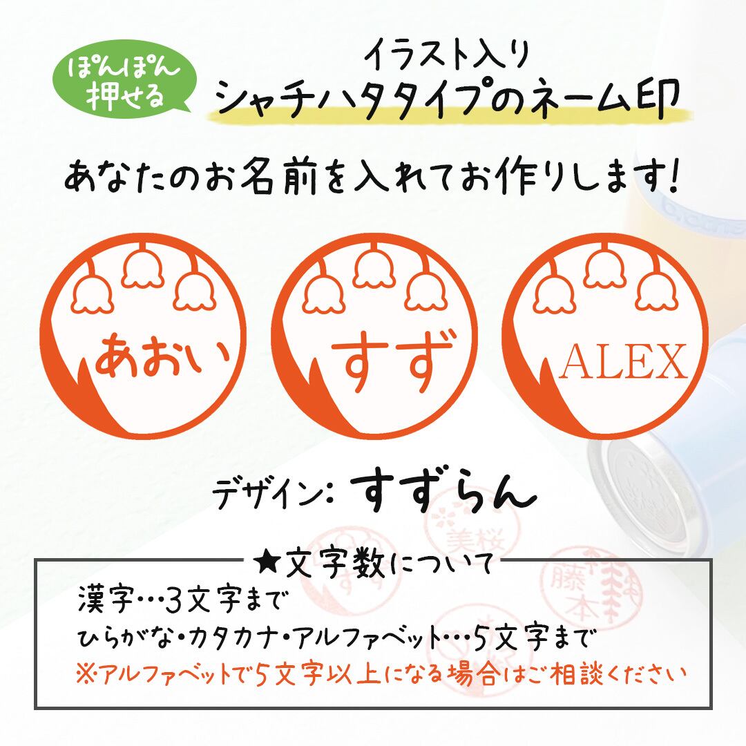 かわいいイラスト付きのシャチハタタイプネーム印。