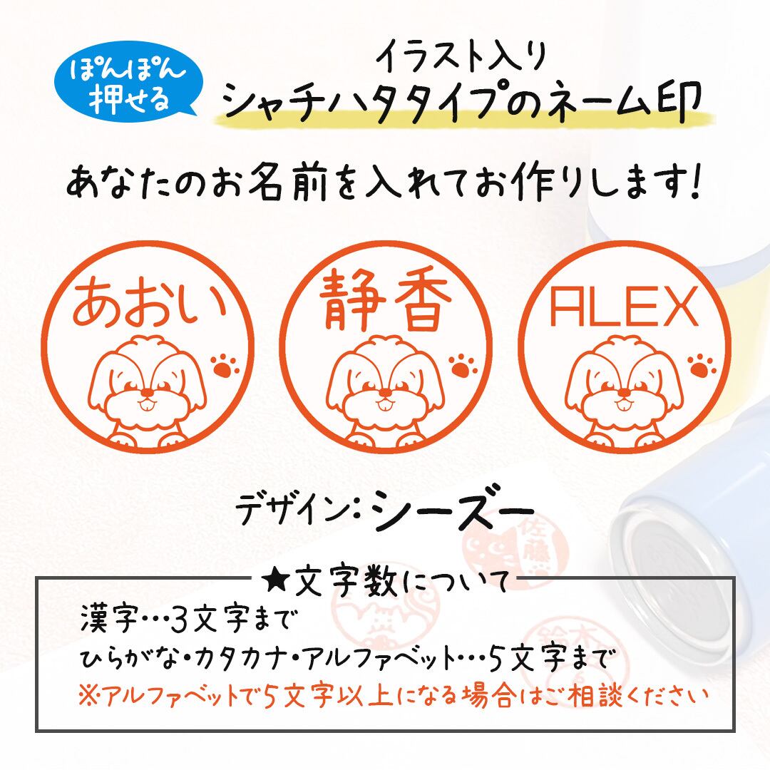 かわいいイラスト付きのシャチハタタイプネーム印。