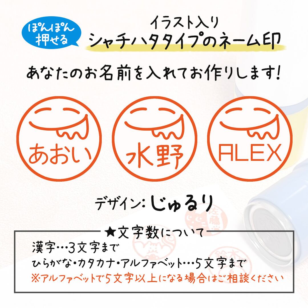 かわいいイラスト付きのシャチハタタイプネーム印。