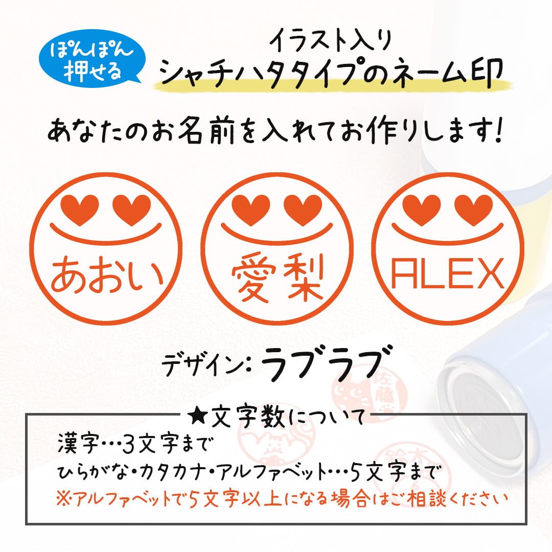 かわいいイラスト付きのシャチハタタイプネーム印。