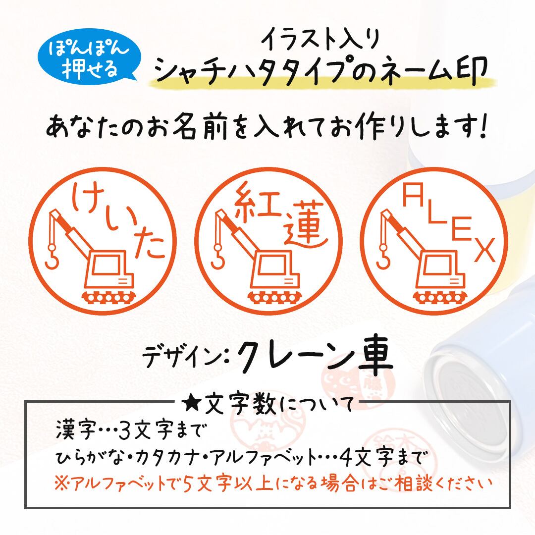 かわいいイラスト付きのシャチハタタイプネーム印。