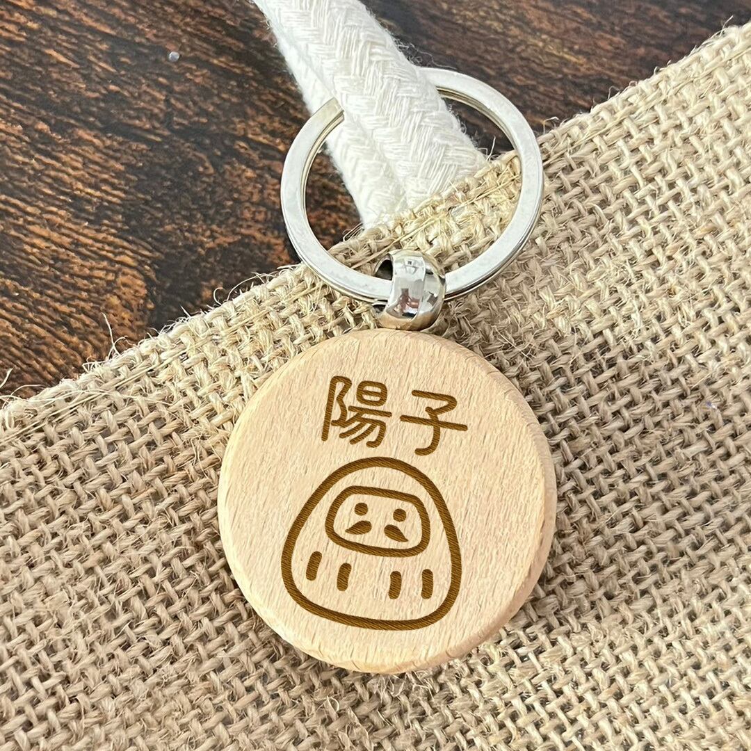 レーザー彫刻機を使用し、あたたかな木製のキーホルダーに文字を彫刻してお作りします◎