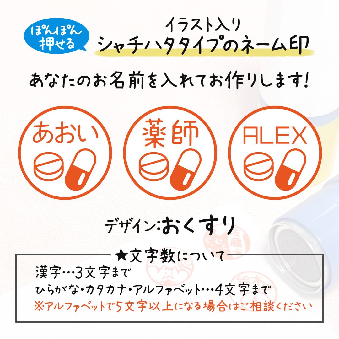 かわいいイラスト付きのシャチハタタイプネーム印。
