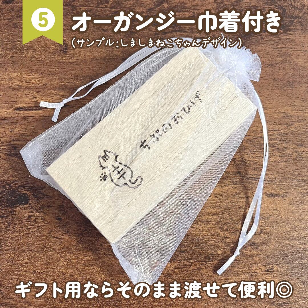 ひとつひとつレーザー加工機で文字とイラストを彫刻いたします。印刷ではなくレーザーで焼きますので、木のナチュラルであたたかい素材感をお楽しみいただけます。