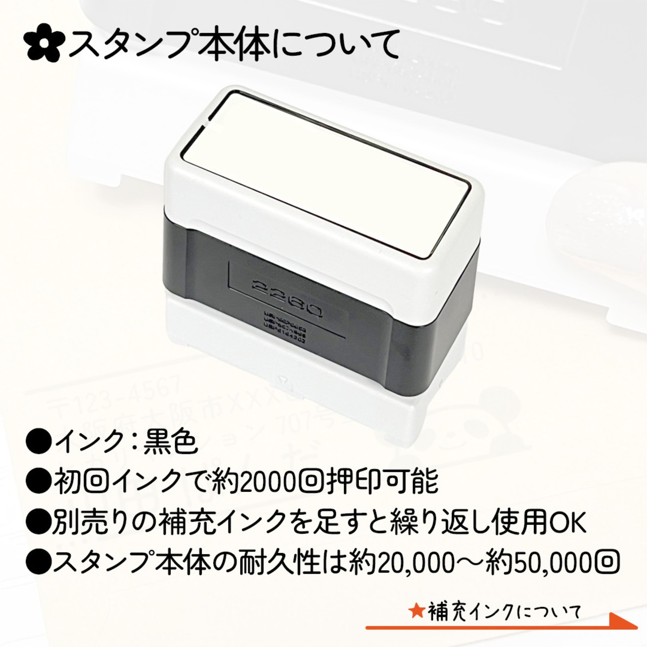 ○スタンプ本体の耐久性は約20,000〜約50,000回