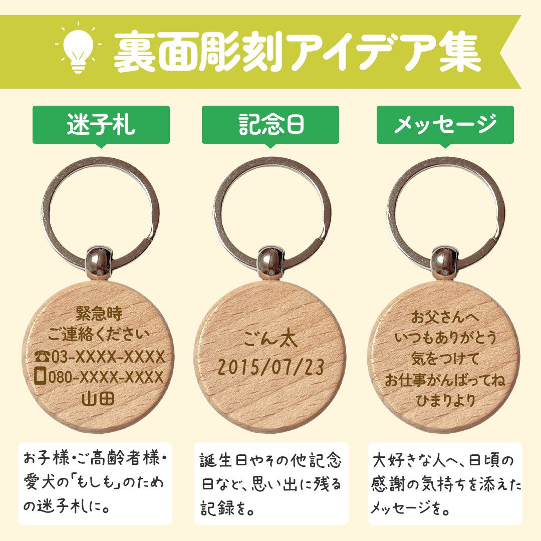 一言メッセージを添えたり、緊急連絡先を添えて迷子札にしたり、記念品として誕生日や記念日を入れたりとアイデア次第で様々な活用ができます。
