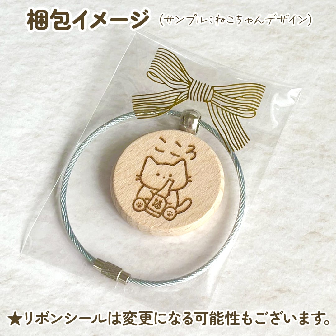 レーザー彫刻機を使用し、あたたかな木製のキーホルダーに文字を彫刻してお作りします◎