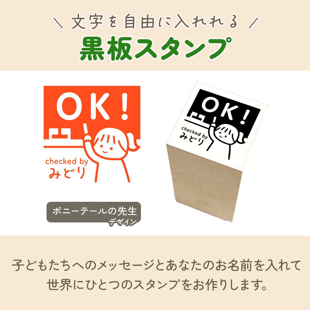 黒板に好きな文字と下段にあなたのお名前を入れて、世界にひとつのスタンプをお作りします♪